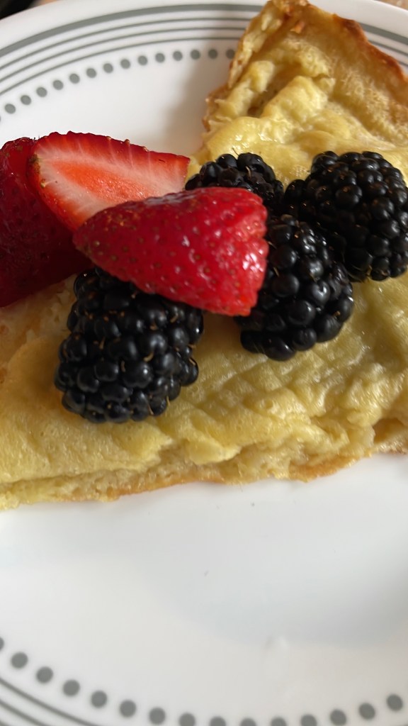 -Mix the following: 1 tablespoon of melted local raw honey, 1 cup unbleached organic flour of choice, 3/4 cup milk of choice ( we use clean ingredient organic almond or cashew milk), 3 or 4 pasture raised organic eggs, 1-2 tablespoons organic vanilla extract